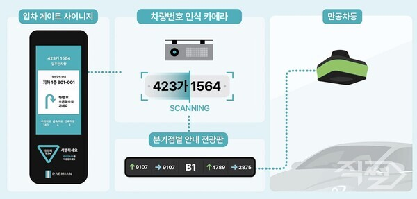 AI 통합 주차유도 서비스는 입차 시 차량 번호를 실시간 인식하고, 입주민 차량의 경우 평소 선호 주차 위치나 거주동과 가까운 구역을 추천·안내한다. 방문 차량은 사전 예약 정보에 따라 최단 경로와 최적 주차 위치를 제공한다.