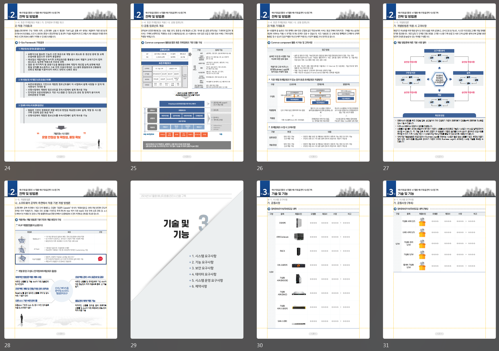 전자정부 표준 프레임워크 기반. 공통 컴포넌트 사용계획, 적용 기대효과까지 포함되어 있으며, 소프트웨어 공학적 측면의 기본 개발 방법론이 상세히 서술됩니다.