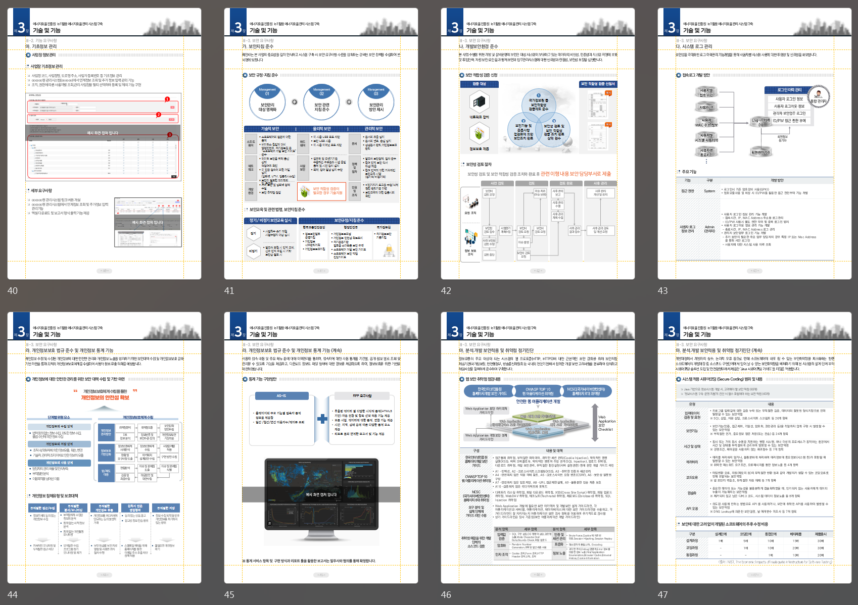 공공사업에서 평가위원이 가장 꼼꼼하게 보는 영역입니다. DB 접근제어, 구간 암호화, DBMS 보안 정책, 데이터 표준화 지침 등 실전 수준의 작성 방법을 확인할 수 있습니다.