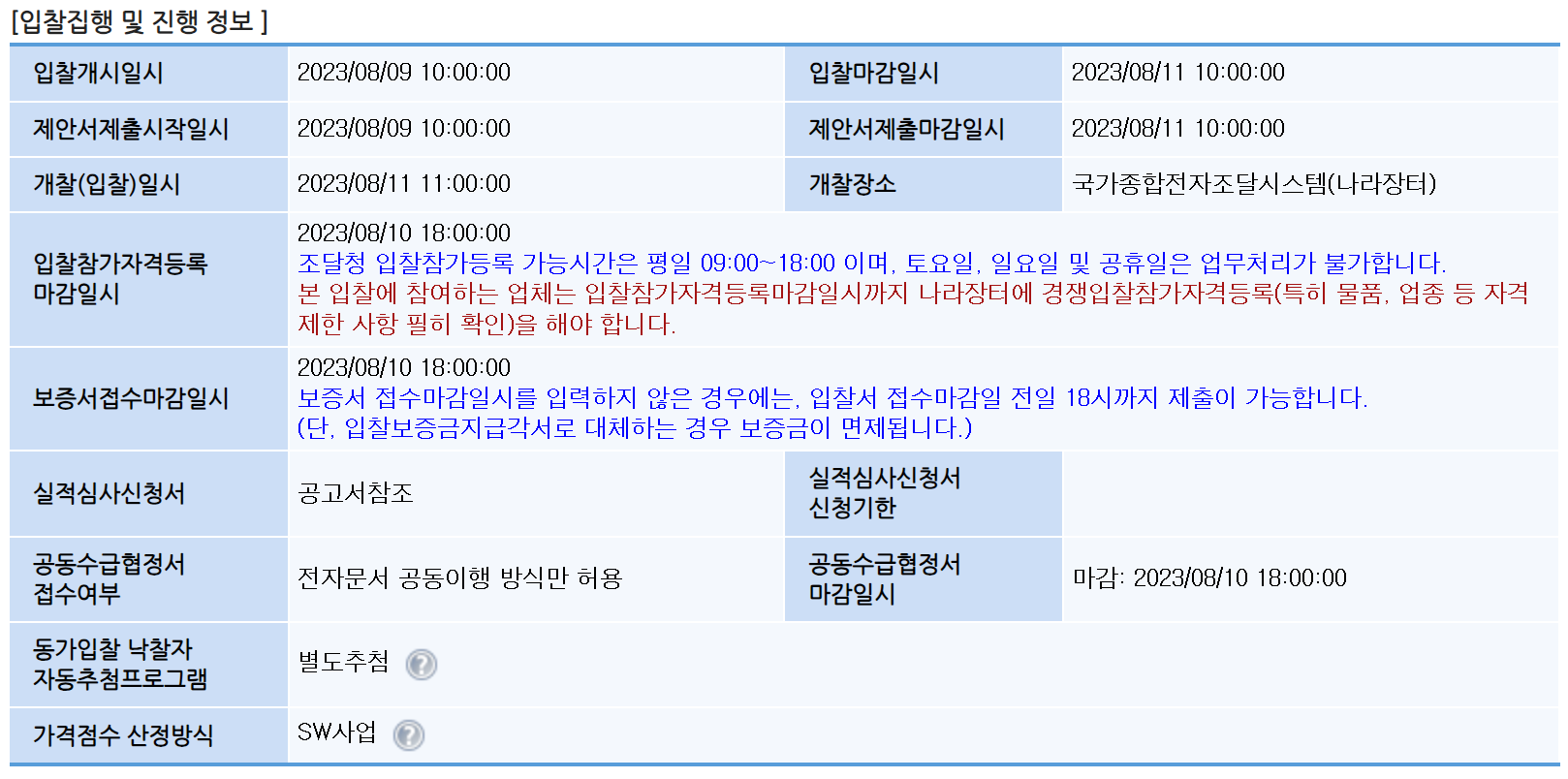 - 입찰일 이전에 기업소개 등을 제외하고 '기술부문'이 작성되어 공개됩니다.